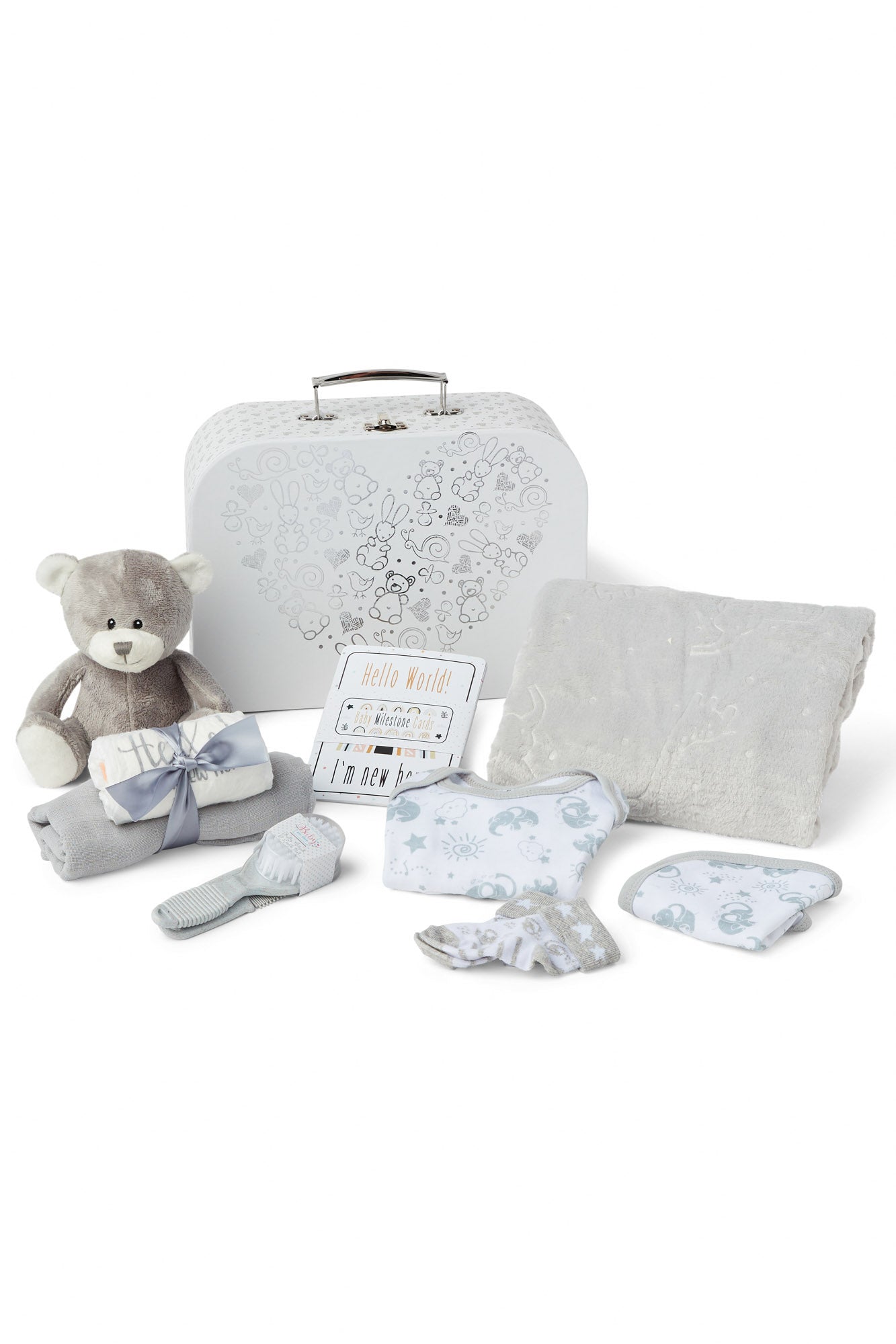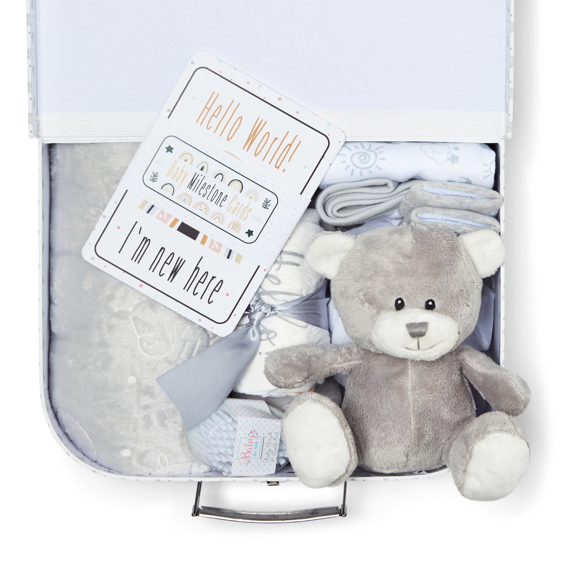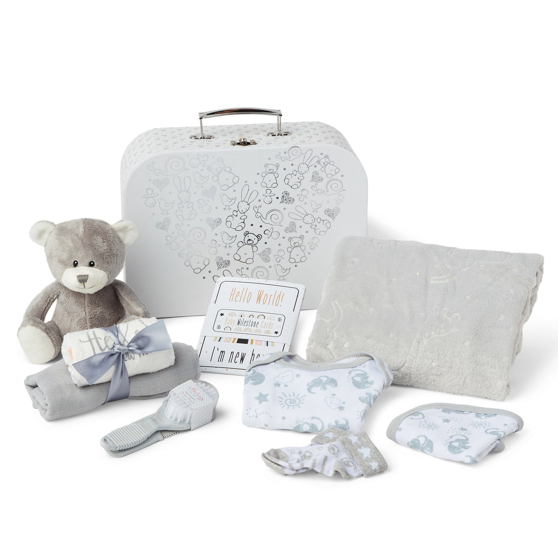 Baby Newborn Baby Gifts - Baby Hamper Grey includes Baby Essentials for Newborn, Teddy Bear, New Born Baby Essentials, New Baby Gifts